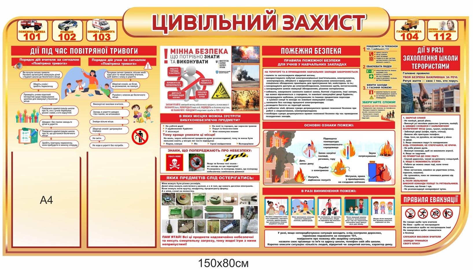 Замовйте стенд “Цивільний захист” на сайті dp-reklama.com та зробіть свій навчальний заклад безпечнішим і свідомішим.