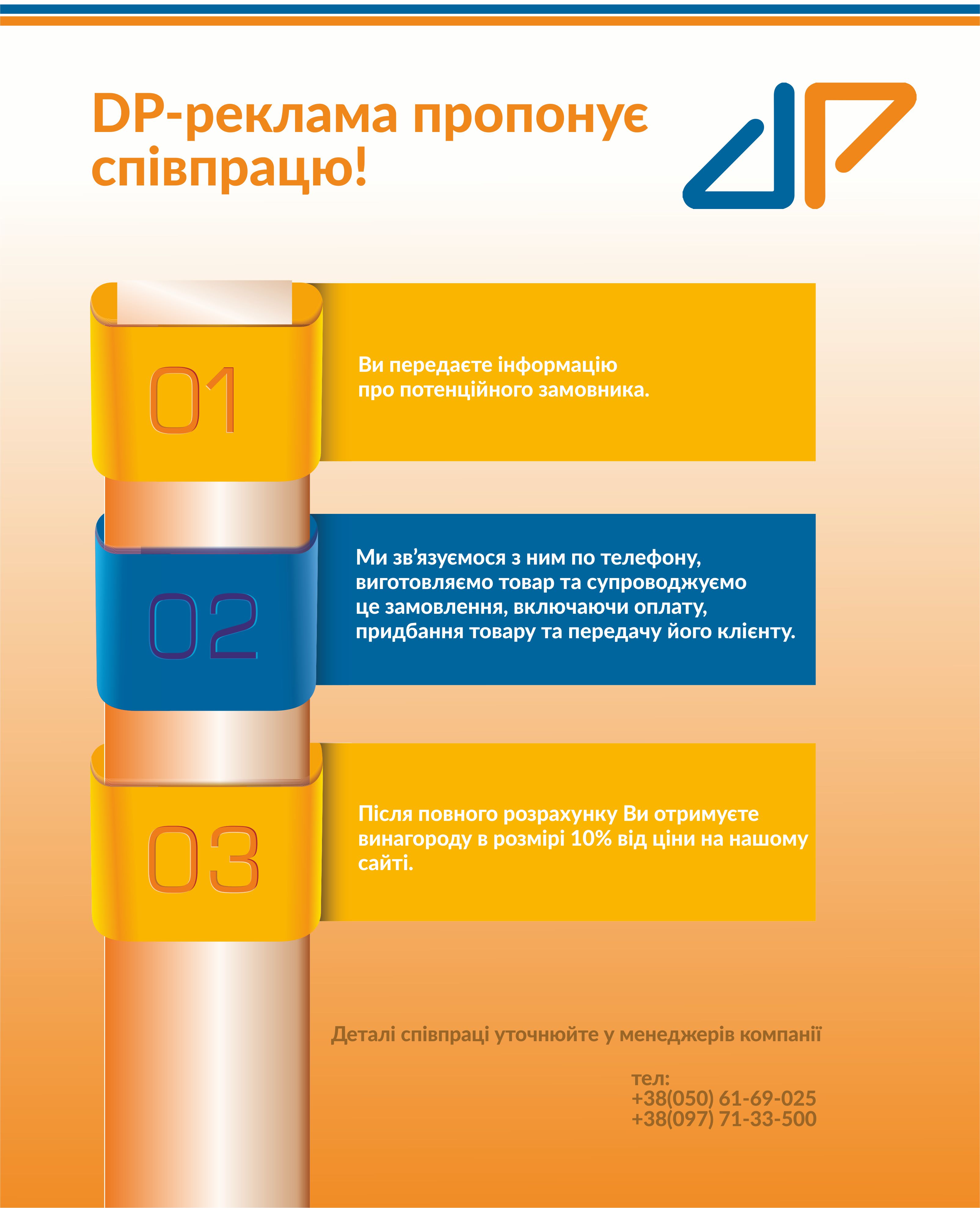 Для інформування населення наша компанія ДП-реклама пропонує широкий вибір рекламної продукції: інформаційні стенди, стенди з безпеки життєдіяльності та куточки цивільного захисту, презентаційні дошки, стенди з державною символікою та систему навігації.