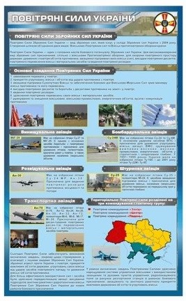 Цей стенд знайомить із Повітряними силами ЗСУ. Основна увага приділяється: