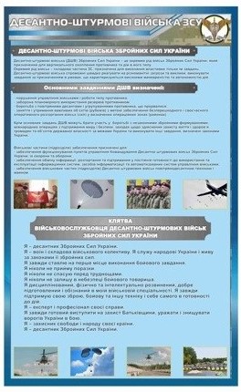 - Стенд формує уявлення про десантно-штурмові війська як елітний підрозділ ЗСУ.