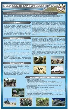 Стенд присвячений найбільш професійно підготовленим військовим — силам спеціальних операцій (ССО).