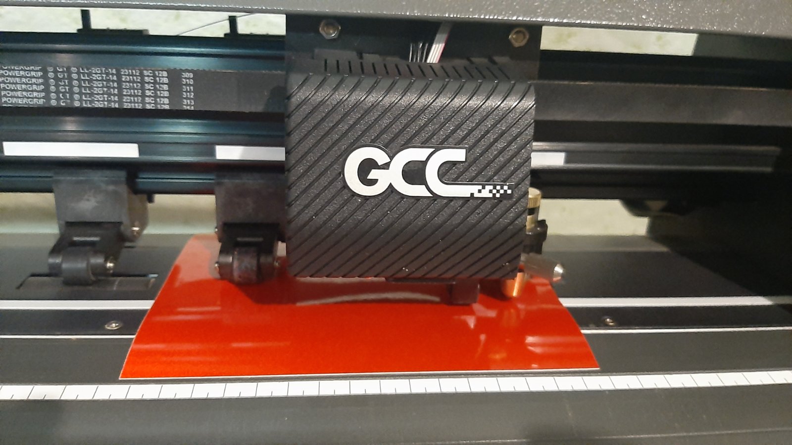 На плотері вирізаються світловідбивні елементи (саме в цьому випадку – червоні) та наносимо їх на табличку.