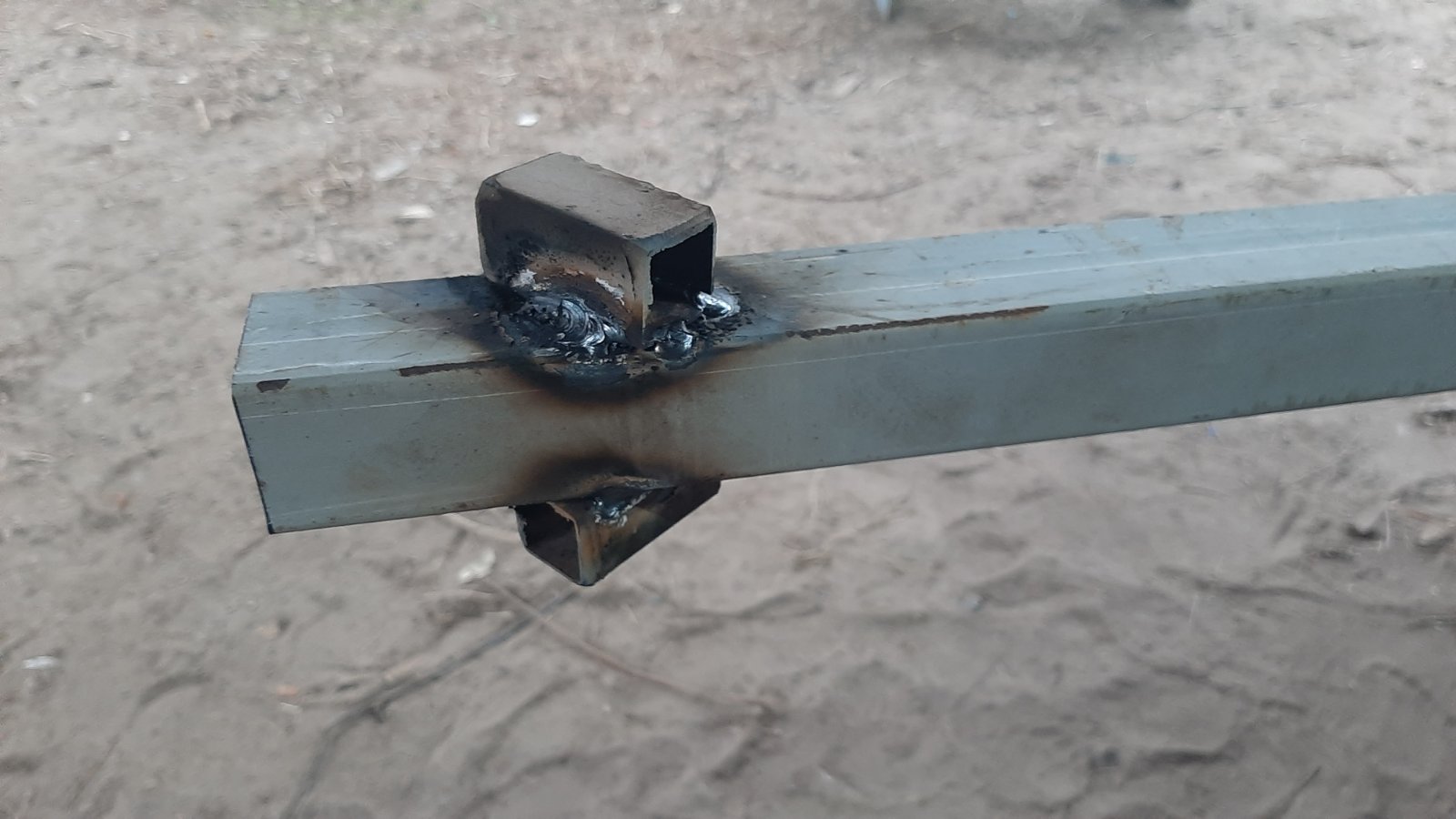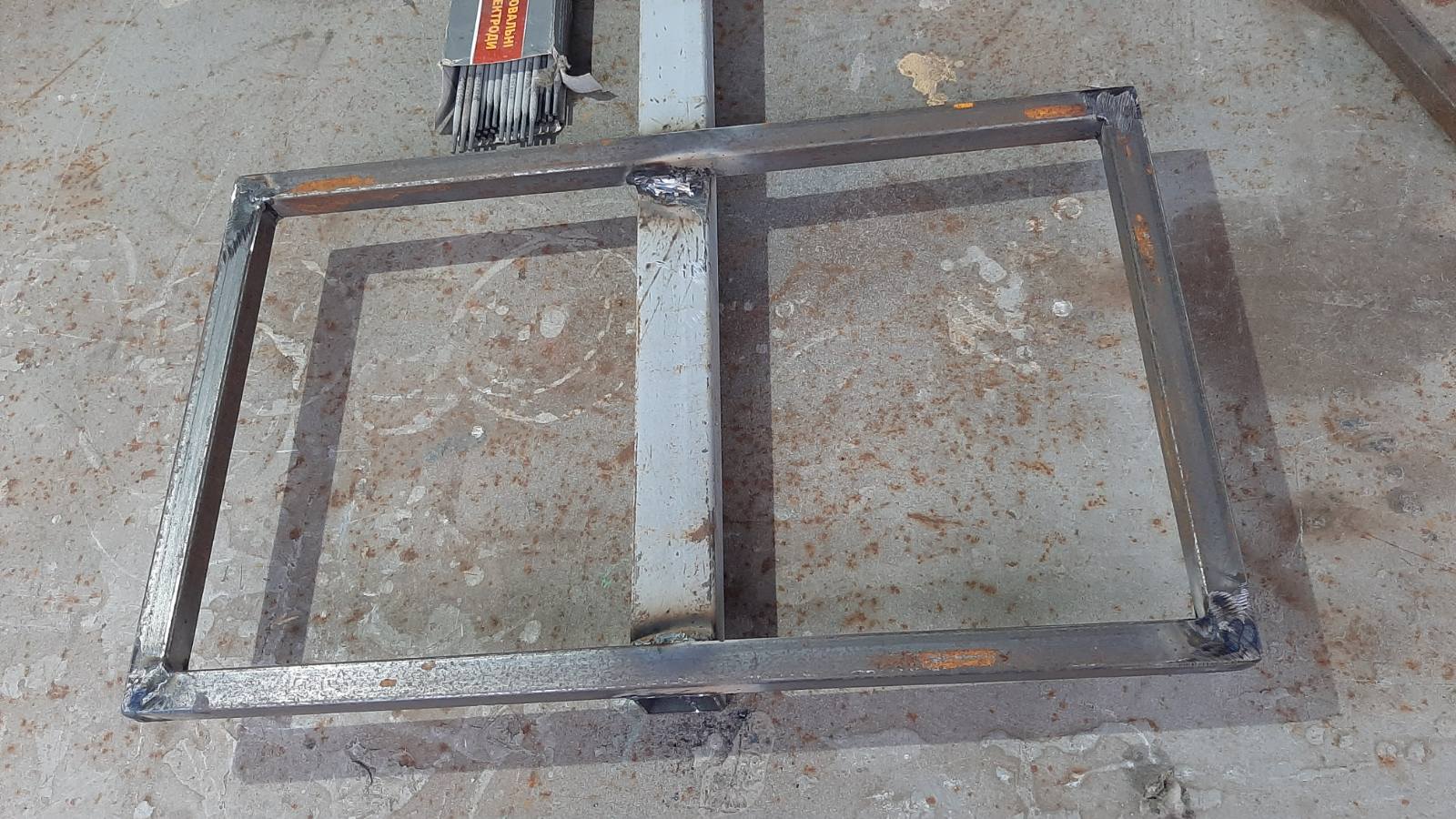 Зварюється рама розміром 50х30 см та приварюється до опори. Довжина опори 2,5 м.